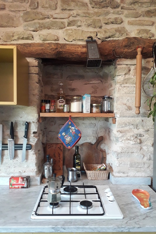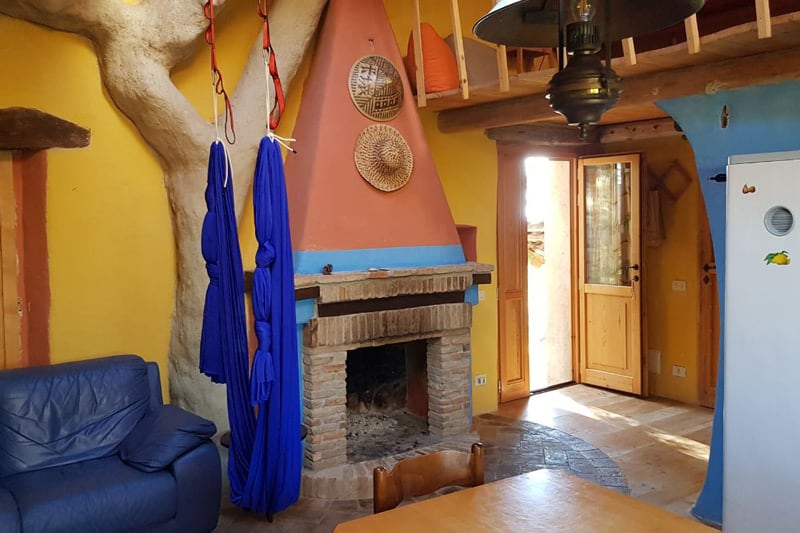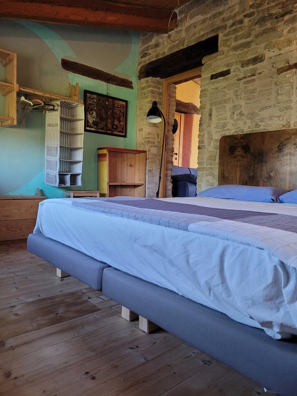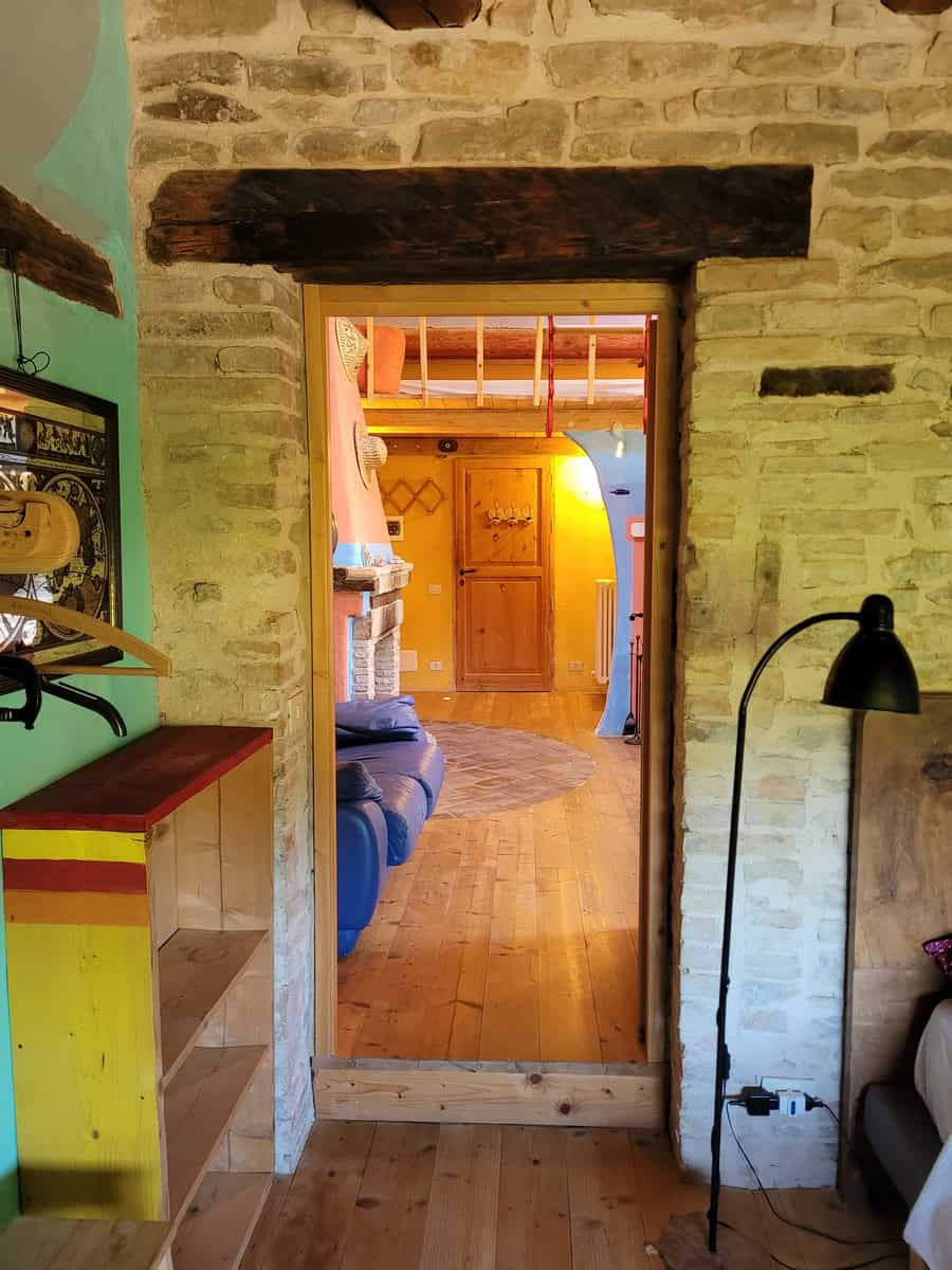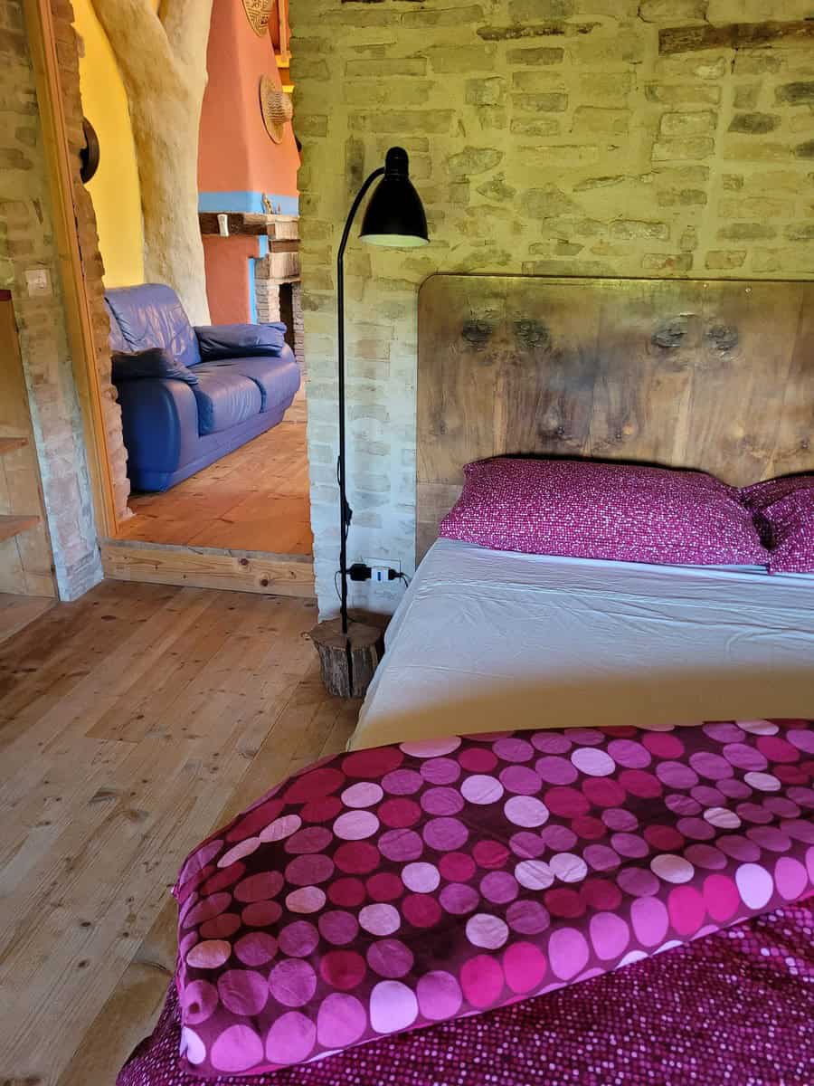 Immergiti nel comfort della Casetta Azzurra. Questa dimora unica offre una camera da letto con un finestrone basso e lungo, una feritoia dalla quale vedi la torre di Pitino e la campagna…una vista mozzafiato, arricchita da una stufa in terra cotta che possiamo accendere in occasioni speciali.
