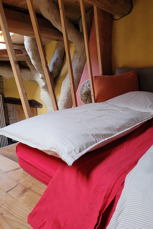 Per coloro che cercano uno spazio aggiuntivo, il soppalco può ospitare comodamente 2 persone su un materasso ad una piazza e mezza. Se necessario, è possibile aggiungere materassi singoli sul pavimento in legno, permettendo di ospitare fino a 4 persone.