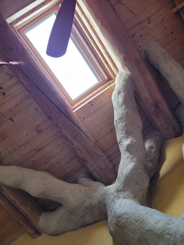 E per dare un tocco di design unico, la casa è equipaggiata con un ventilatore a soffitto in legno di design, e dalla creazione di un “albero di terra”.