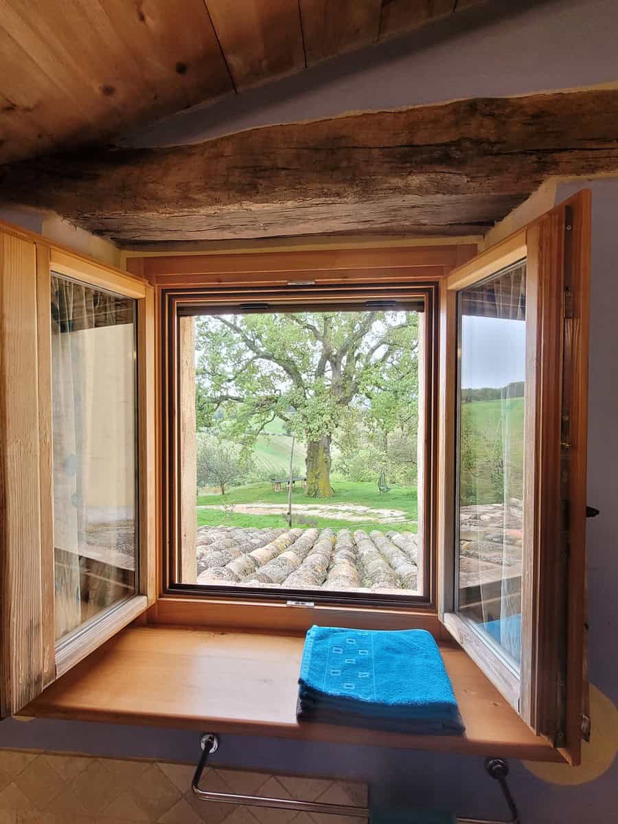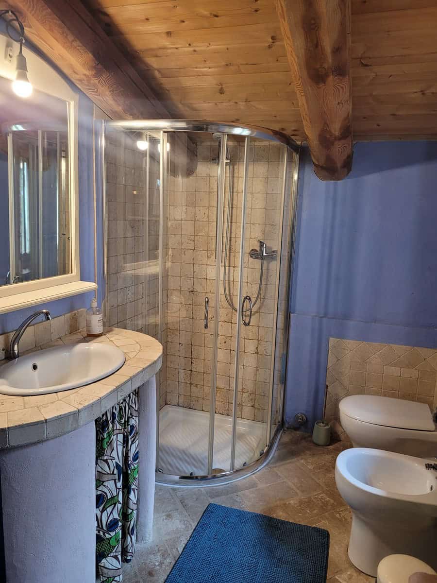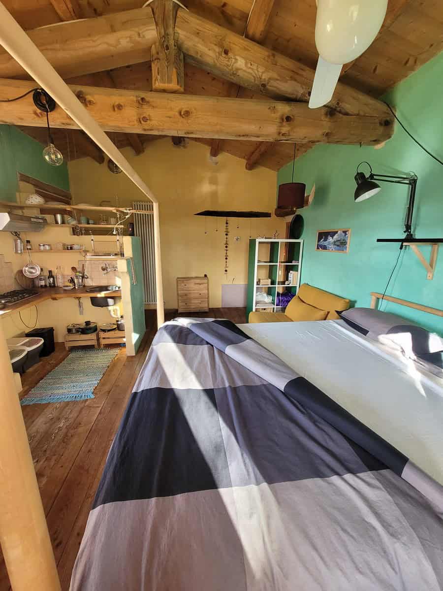 Scopri la “Casetta Verde”, il tuo rifugio perfetto dove ogni dettaglio è studiato per garantirti momenti di relax e intimità. Questo spazio accogliente combina in un unico ambiente un gran letto, un confortevole divano, un pratico angolo cottura e un tavolo da pranzo con due sedie. Adiacente, troverai un bagno spazioso. La finestra offre una vista mozzafiato sulle sinuose colline e su una delle querce più grandi che tu abbia mai visto. E per le serate più fresche, una stufa a legna con focolare a vista crea l’atmosfera ideale.
