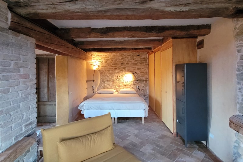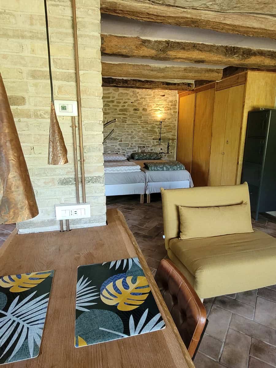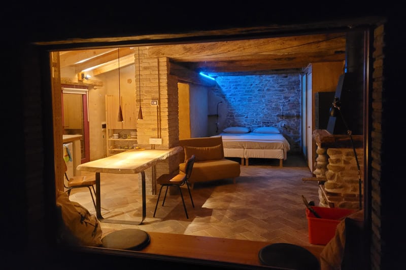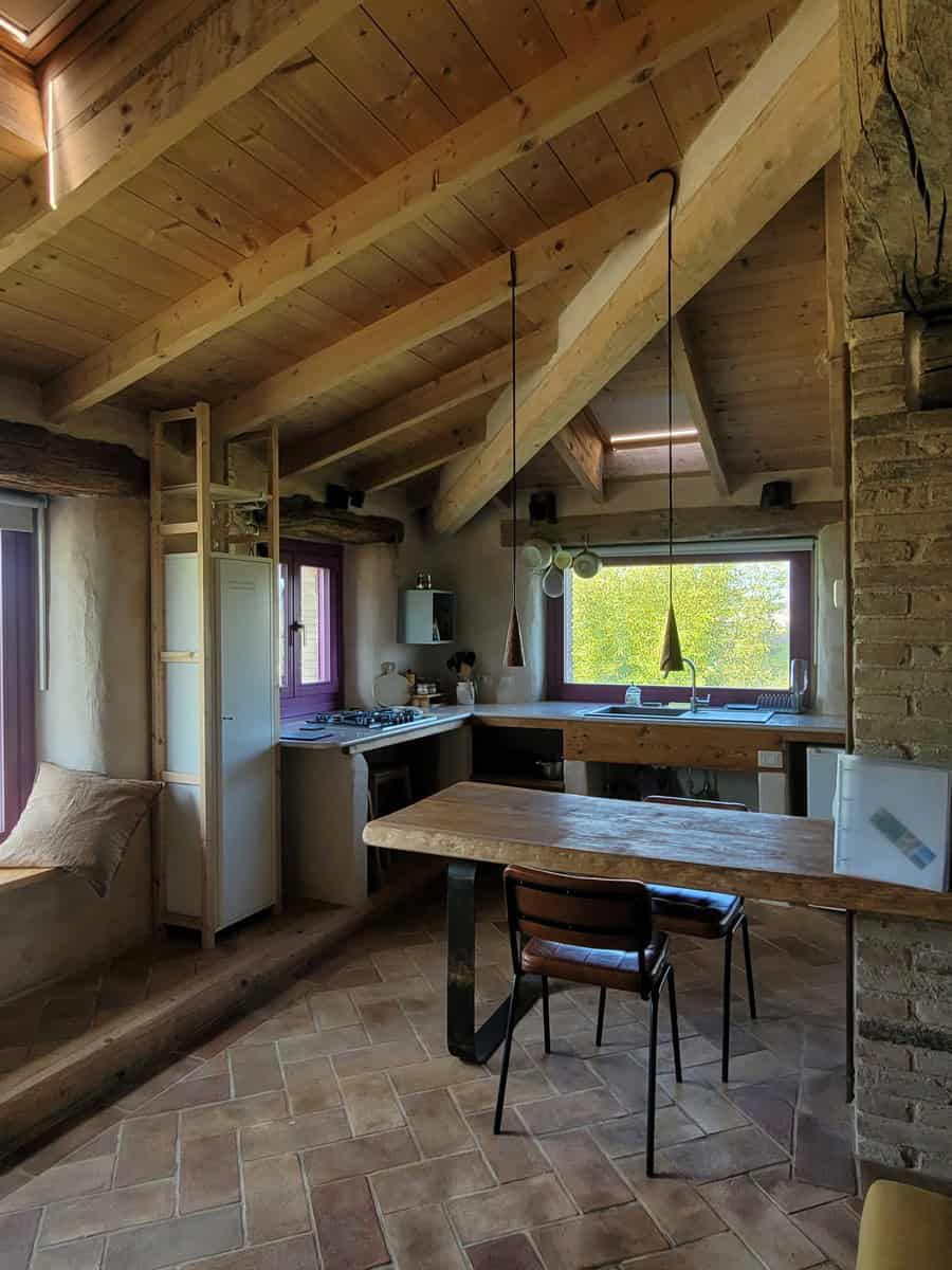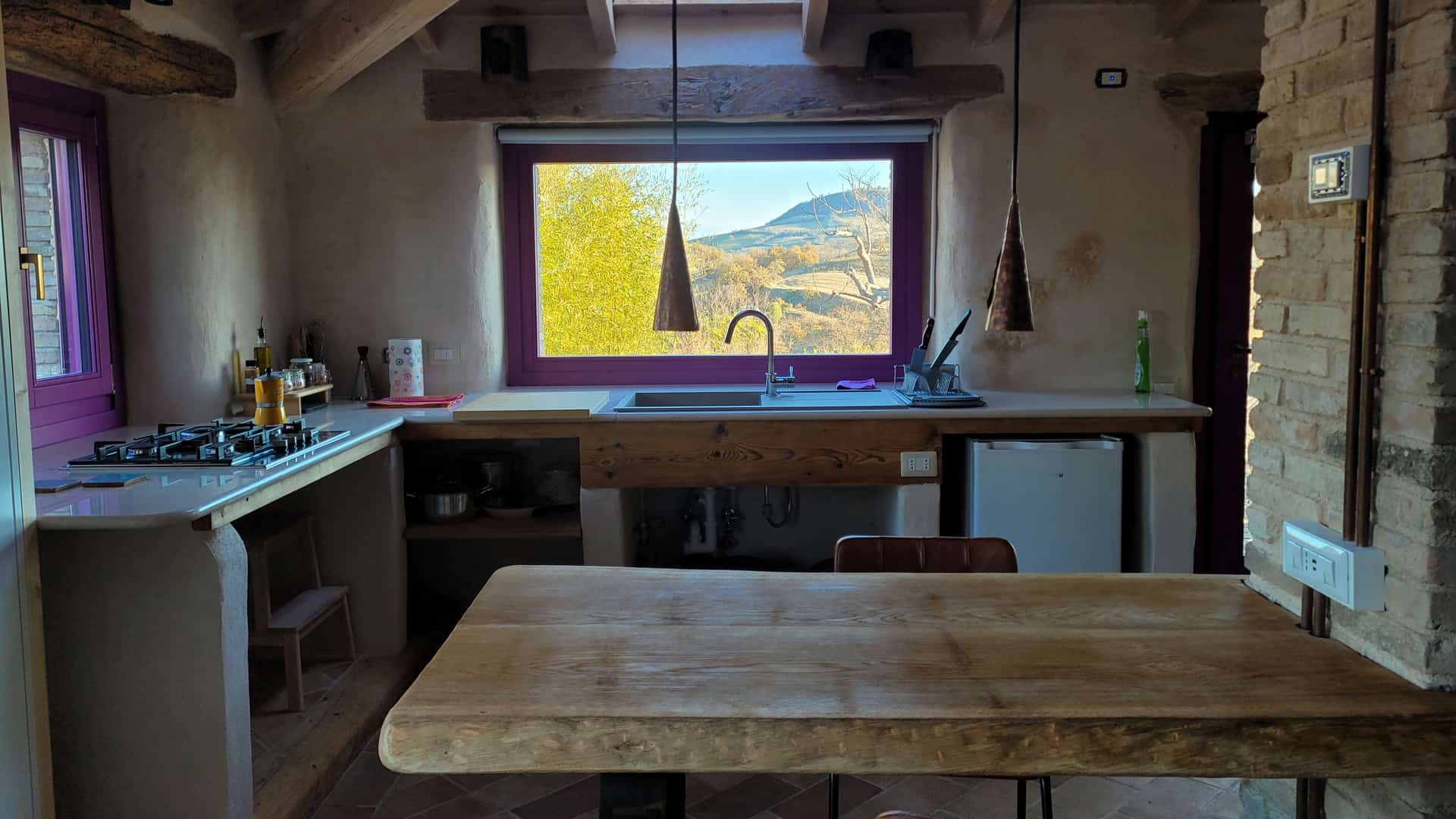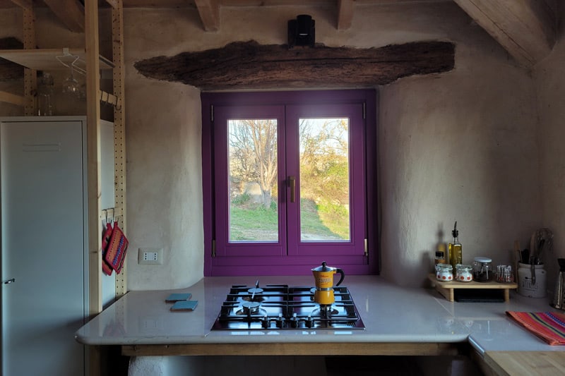 A piano terra con giardino privato, riscaldamento a pavimento, intonaci in terra e paglia, caminetto fatto in pietre raccolte nei campi qui intorno e al torrente che passa non lontano da casa, cucina artigiana in muratura, finestroni di ultima generazione super performanti direttamente sulla natura con una vista incredibile. Bambuseto in giardino. Si definirebbe un open space. Che dire della “Casetta Viola”? io quando ci sono mi sento nel giusto contorno alla mia persona e frizzo di gioia, mi sento emozionato e divento creativo e sereno. Vieni a provarla e fammi sapere che effetto ti fa! Faccio un prezzo speciale per il primo periodo in quanto il giardino e l’accesso sono ancora in divenire.